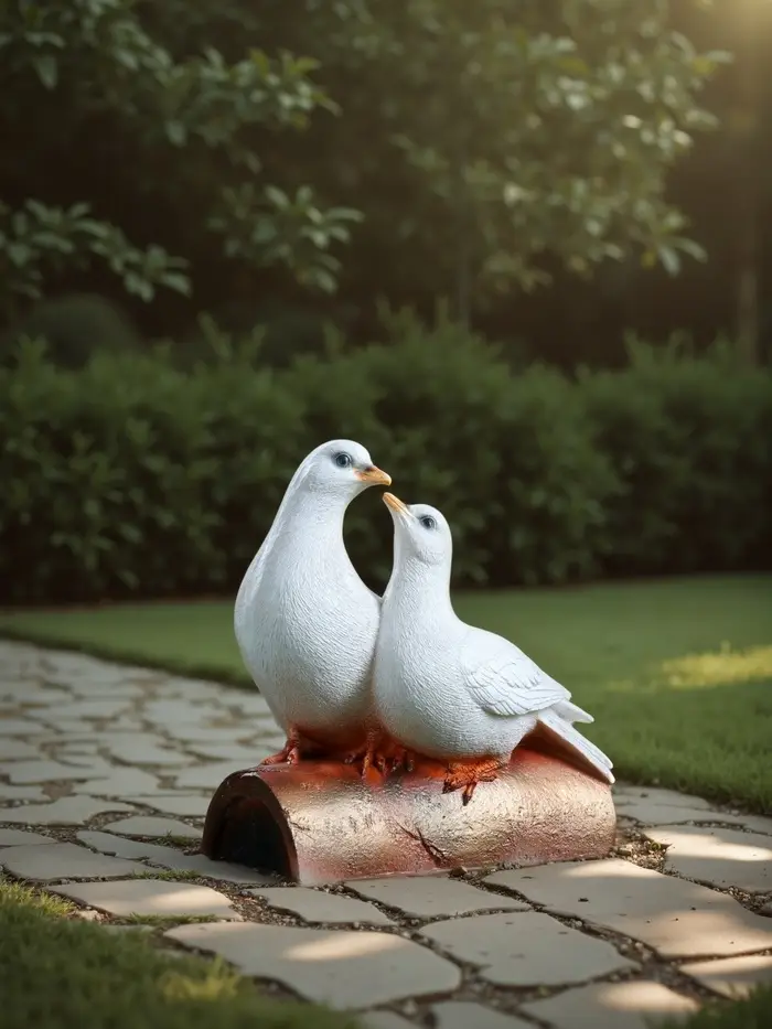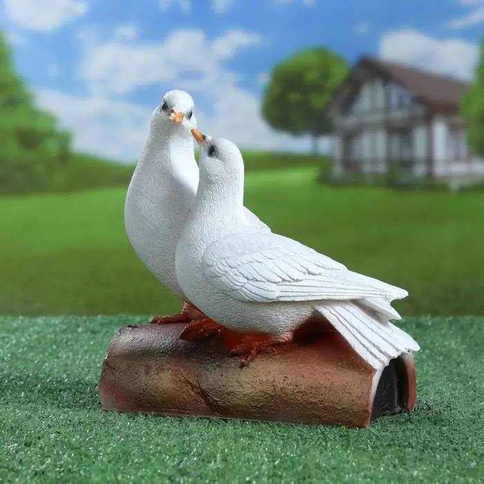 Садовая фигура из полистоуна «Голуби Пара на трубе», 25×14×22 см