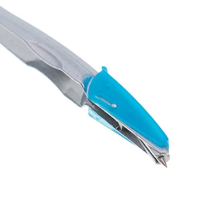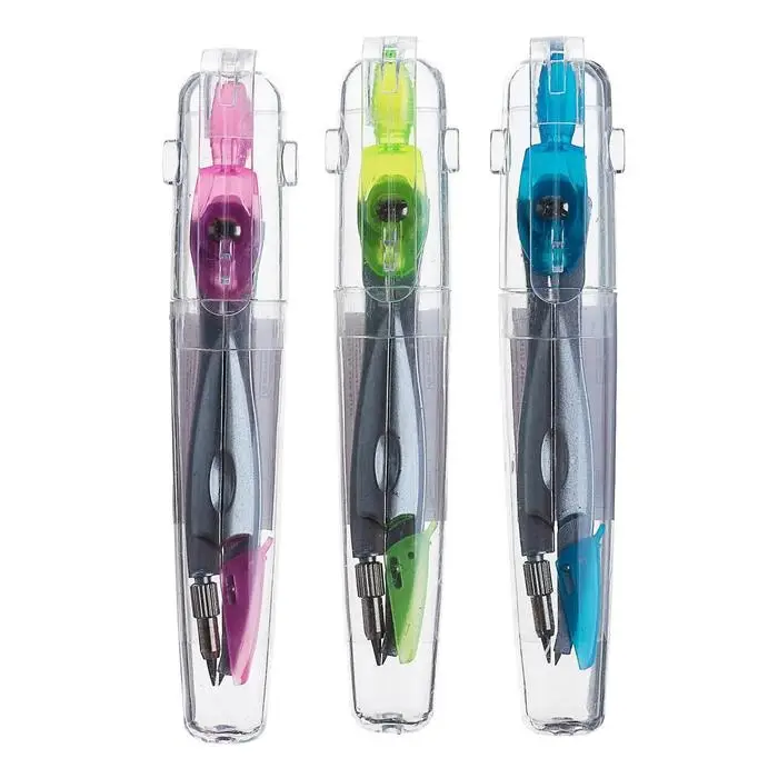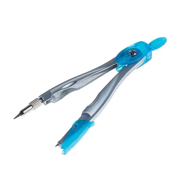 Этот металлический циркуль с защитным колпачком упакован в удобную пластиковую тубу. Он подходит для повседневного использования в школе или на работе, где важны безопасность и компактность хранения.