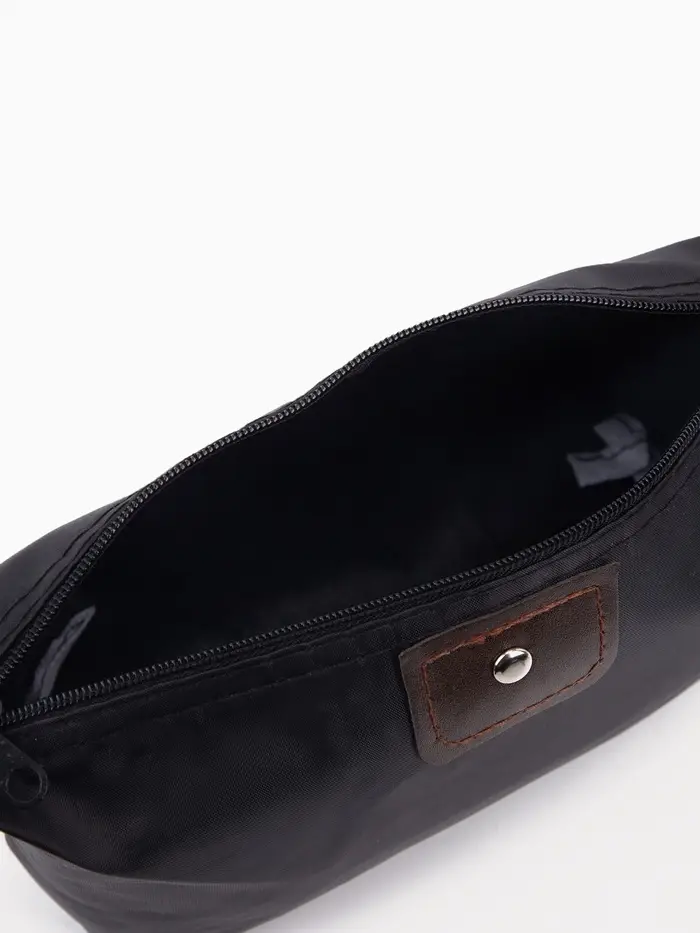 Порядок в каждой сумке начинается с маленькой детали! Чёрная косметичка на молнии — это компактный и практичный органайзер для личных мелочей. Её лаконичный дизайн и продуманная конструкция делают аксессуар универсальным спутником в путешествиях, на работе или в спортзале.