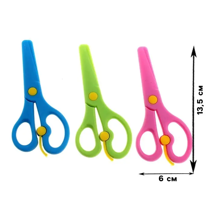 Ножницы 13.5 см пластиковые, с фиксатором, закругленные концы, в картонной коробке, МИКС