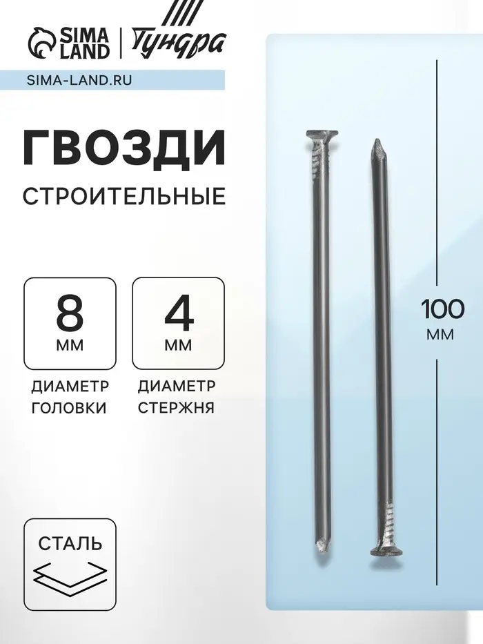Гвозди ТУНДРА, строительные, ГОСТ 4028-63, без покрытия, 4×100 мм, 5 кг