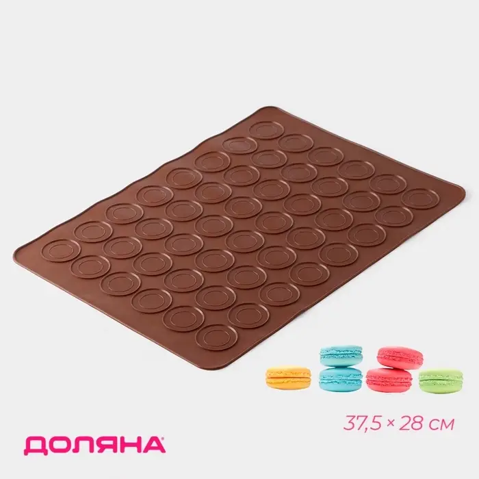 Коврик для выпечки макарун Доляна «Ронд», силикон, 37.5×28 см, коричневый