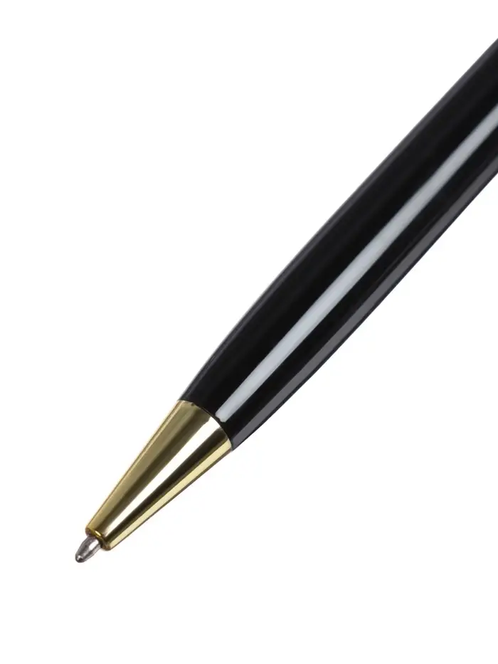 Эта шариковая ручка в строгом чёрно-золотом исполнении — классика в её самом убедительном виде. Её дизайн не подвластен времени, а пропорции и вес созданы для рук, привыкших к долгим встречам и важным записям. Это выбор для тех, кто доверяет проверенным решениям и ценит ясность формы.