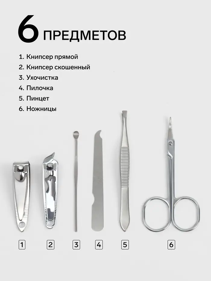 Набор маникюрный, 6 предметов, в футляре, МИКС