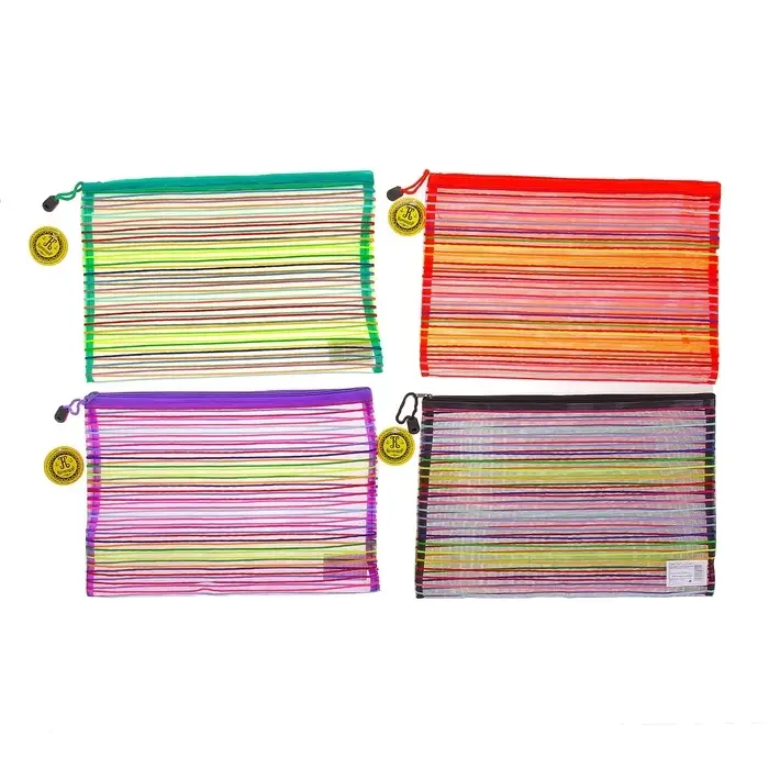 Папка-конверт «Полоска - сеточка» А4, на молнии, 23×34 см, МИКС