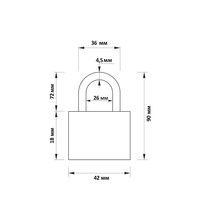 Замок навесной, тип 1, 42×90 мм, 3 ключа