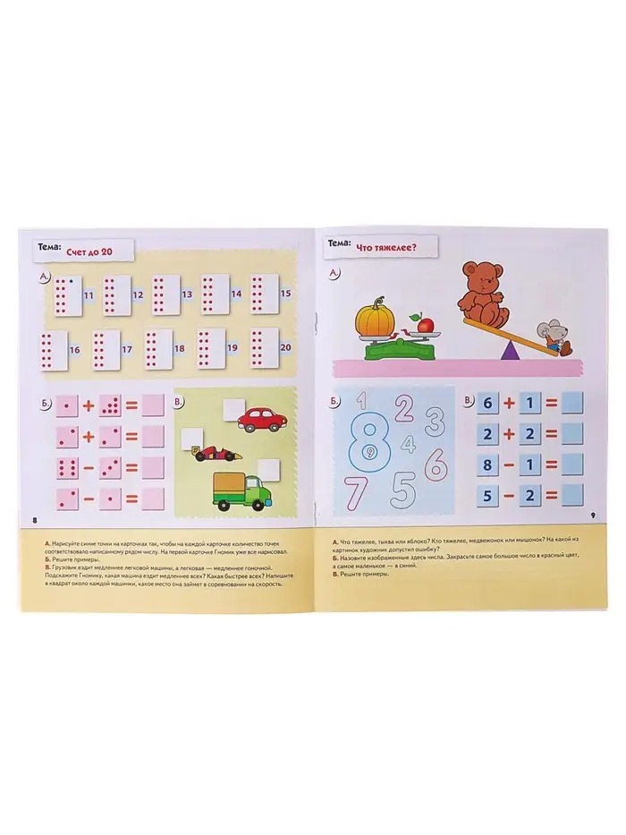 - Задания на счёт от 1 до 10 и переход к числам до 20.
