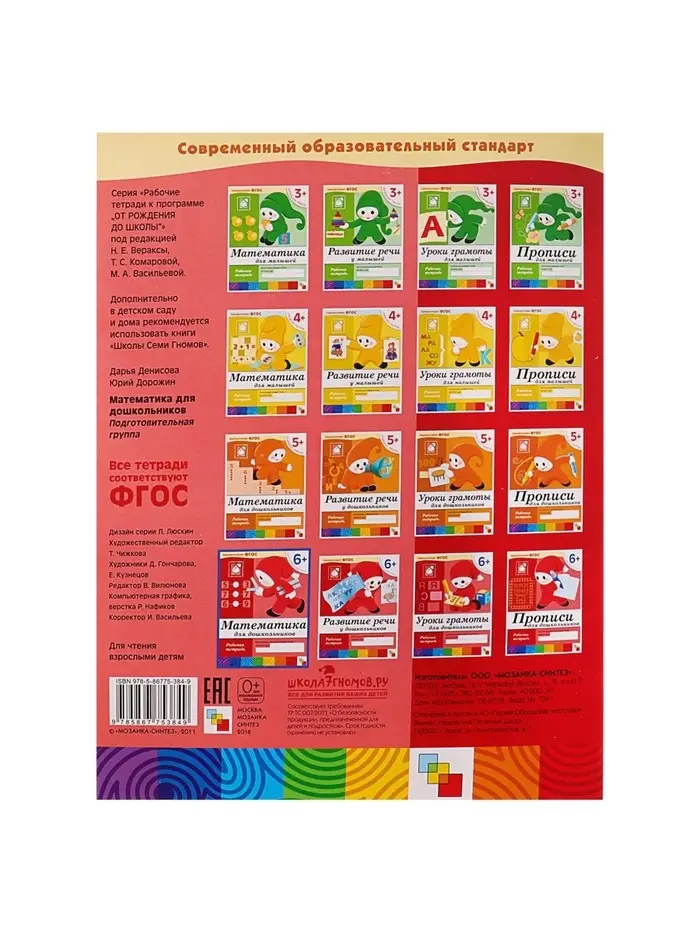 Рабочая тетрадь «Математика для дошкольников», подготовительная группа, Денисова Д., Дорожин Ю.