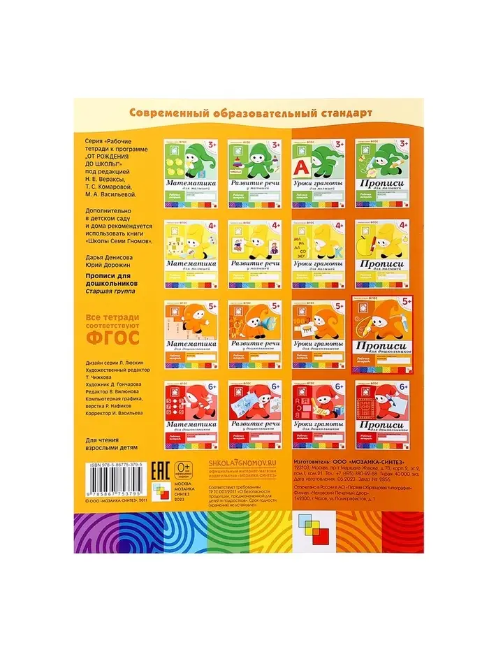 Рабочая тетрадь «Прописи для дошкольников», старшая группа, Денисова Д., Дорожин Ю.