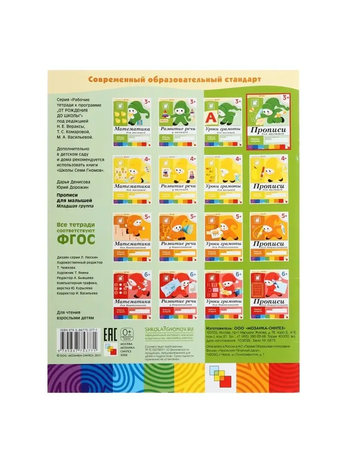 Рабочая тетрадь «Прописи для малышей», младшая группа, Денисова Д., Дорожин Ю.