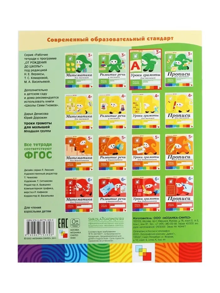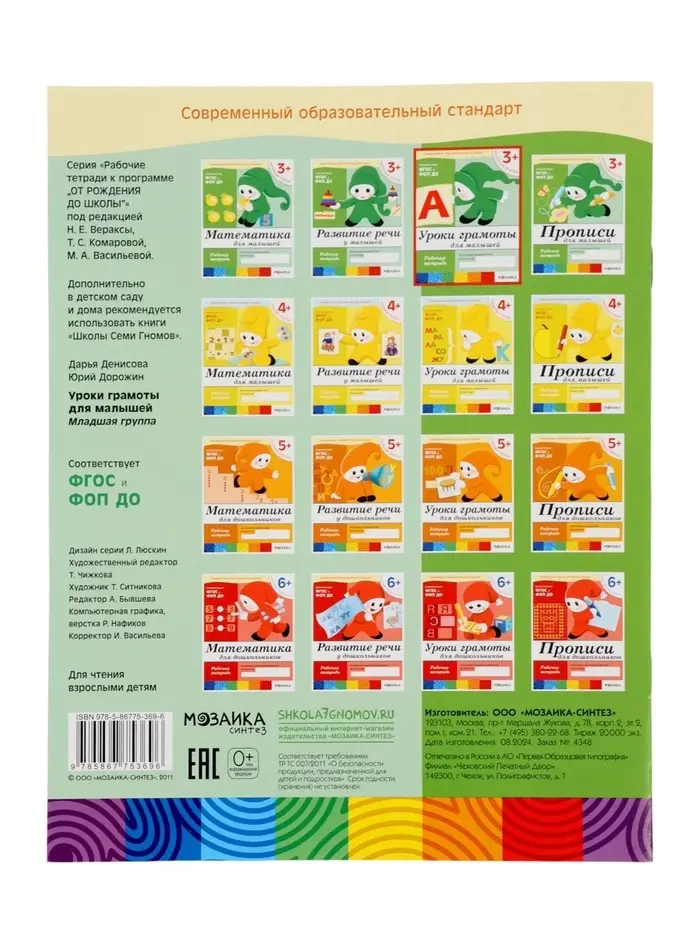 Рабочая тетрадь «Уроки грамоты для малышей», младшая группа, Денисова Д., Дорожин Ю., МИКС