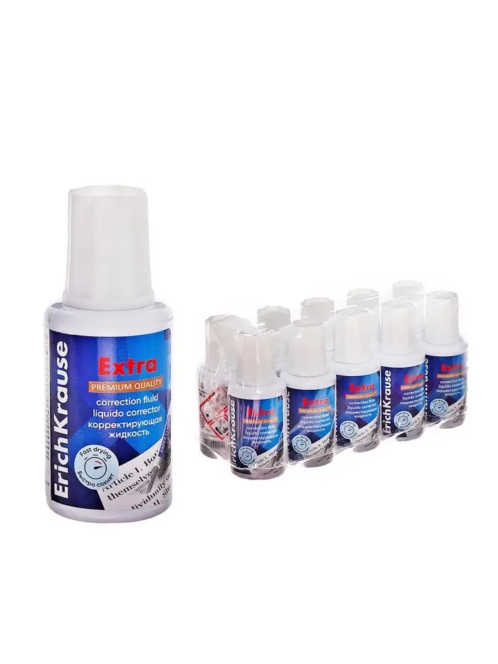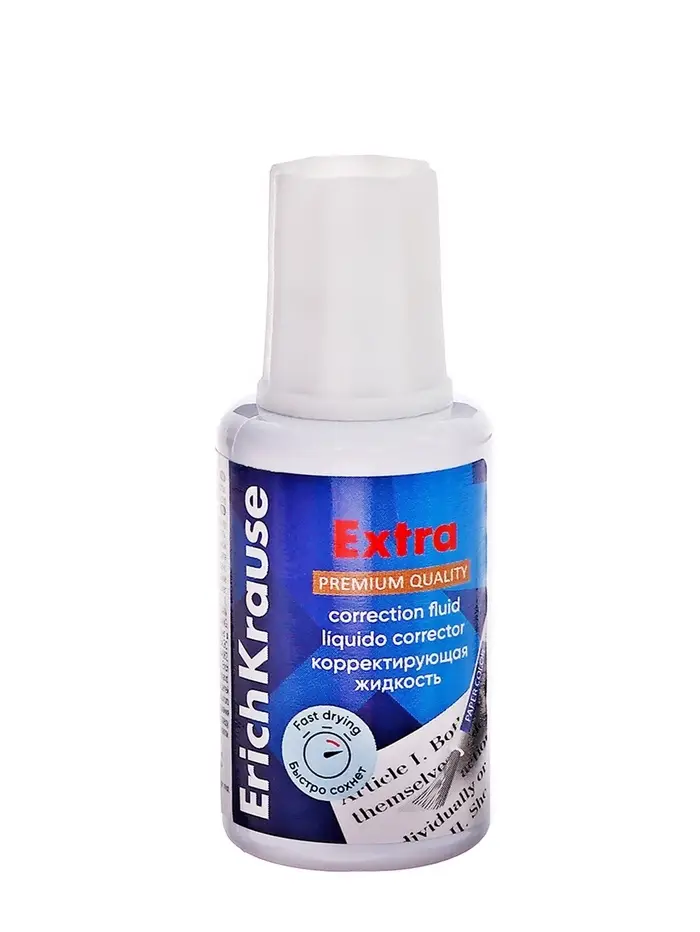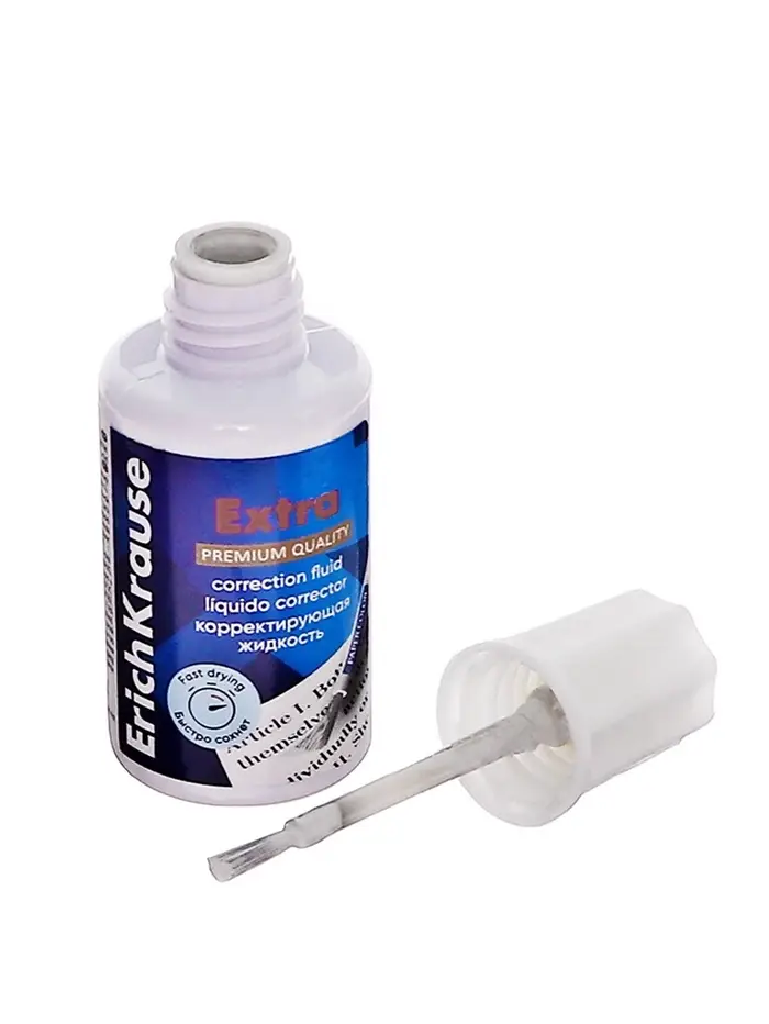 Корректирующая жидкость 20 мл, ErichKrause Extra, на основе растворителя, кисть