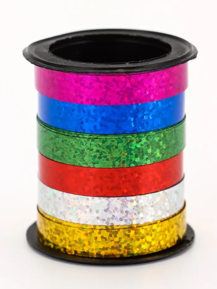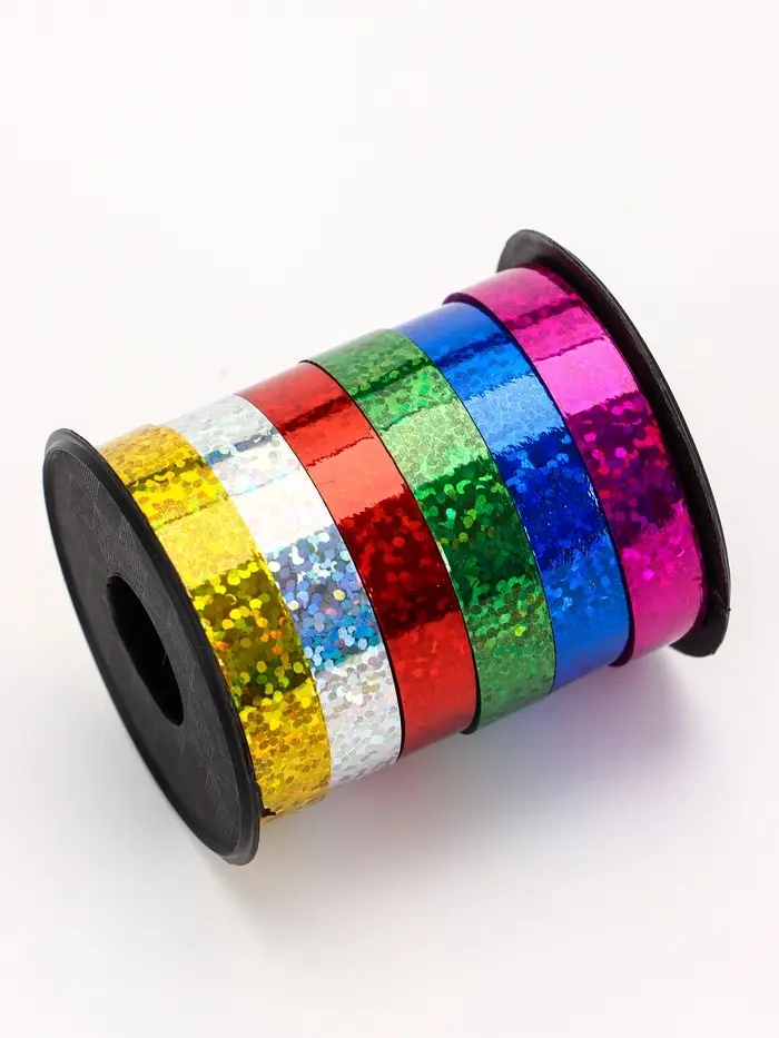 - Прочный пластик: Материал эластичный, держит форму банта, не вытягивается и не лохматится со временем. Ленту можно использовать повторно — она не мнётся и сохраняет голографический эффект годами.