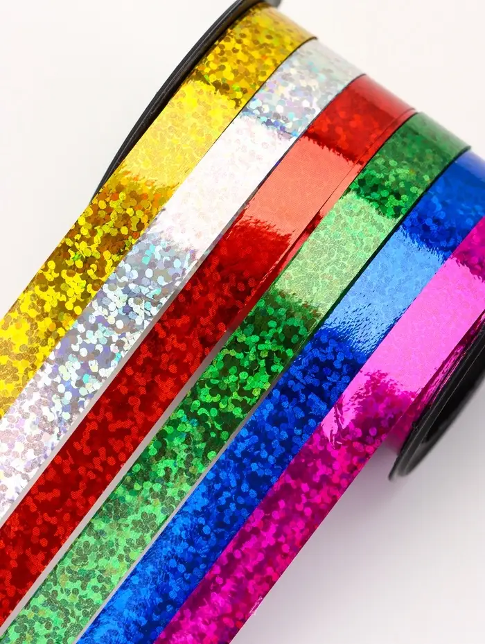 Лента упаковочная голографическая, ассорти, 6 цветов, 0.8 см × 3 м