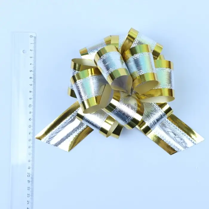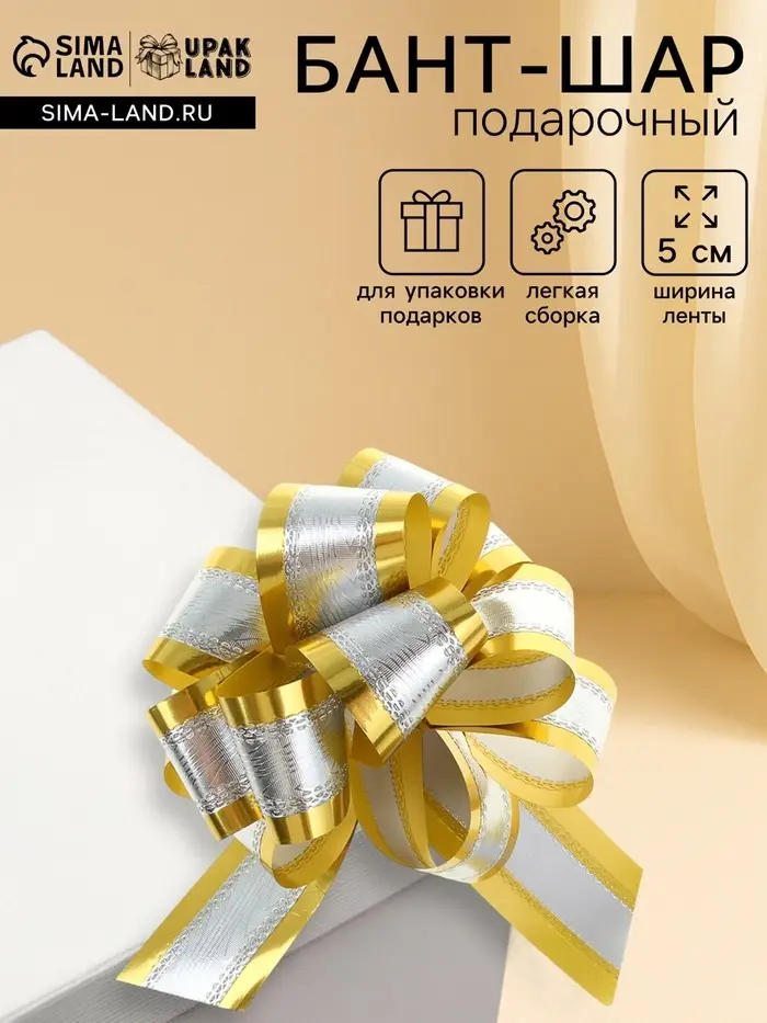 Подарочный Бант - шар №5, серебро в золоте, для упаковки подарков