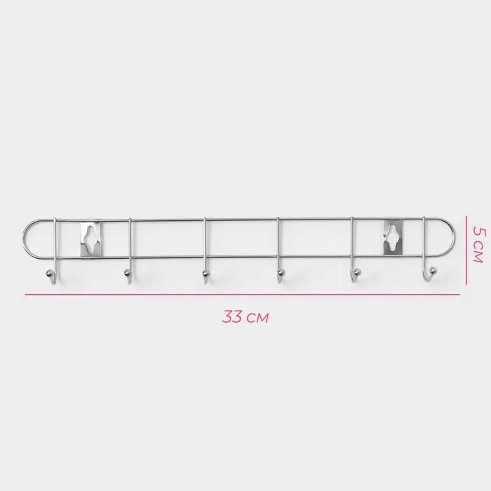 Вешалка настенная Доляна «Лето», 6 крючков, 33×3.5×5 см, хромированная