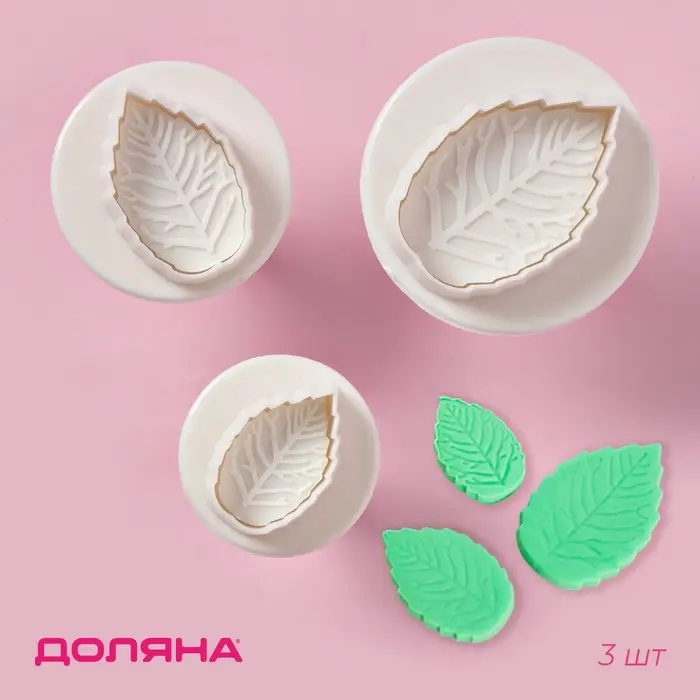 Плунжеры кондитерские Доляна «Лист», набор 3 шт., d=3.2/4/5 см, пластик, белые