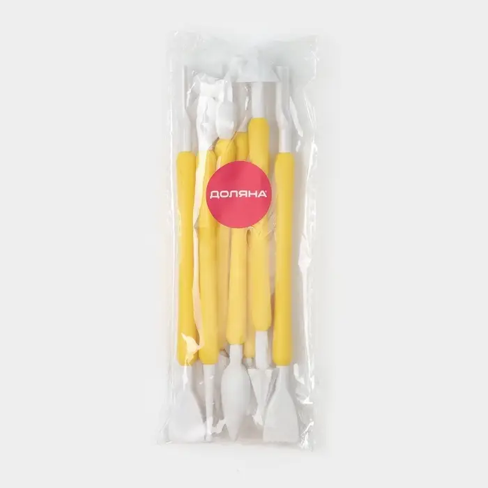 Инструменты для моделирования украшений делают кондитерское искусство доступным. Жёлтый оттенок стеков легко найти среди ингредиентов на столе. Пластиковая основа бережёт поверхность стола от царапин. Работа с мастикой проходит без лишнего напряжения.