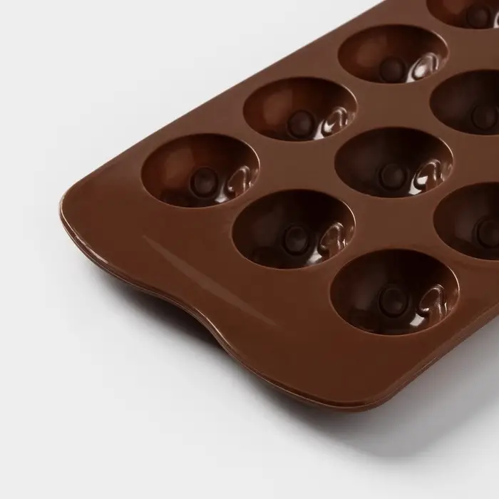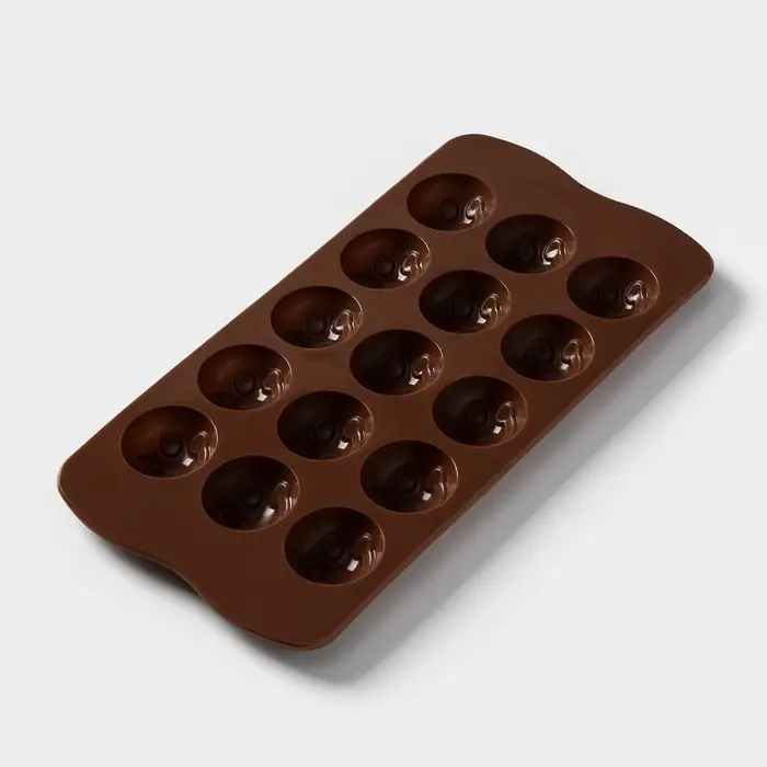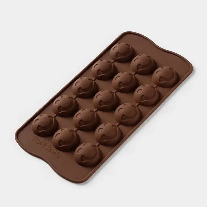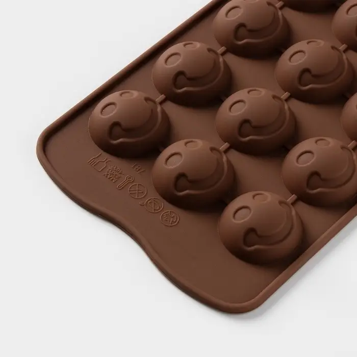 Форма для конфет и шоколада Доляна «Шарик смайл», силикон, 20×10 см, 15 ячеек, коричневая