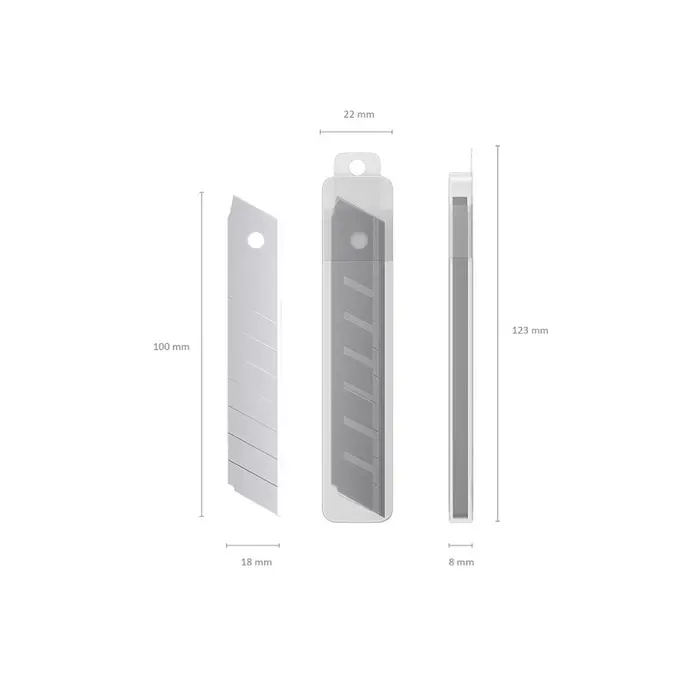 - Ширина 18 мм соответствует большинству канцелярских ножей стандартного размера