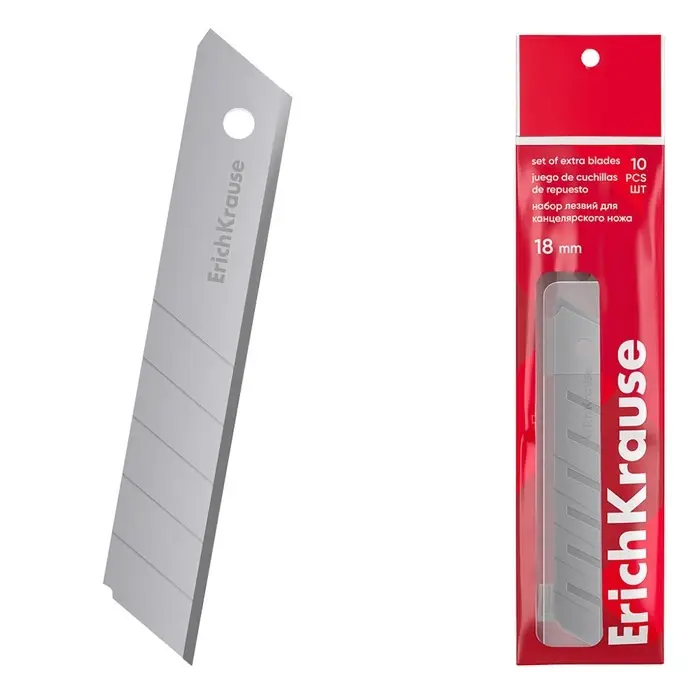 Лезвия для канцелярского ножа ErichKrause, 18 мм, 10 штук, в пластиковом контейнере