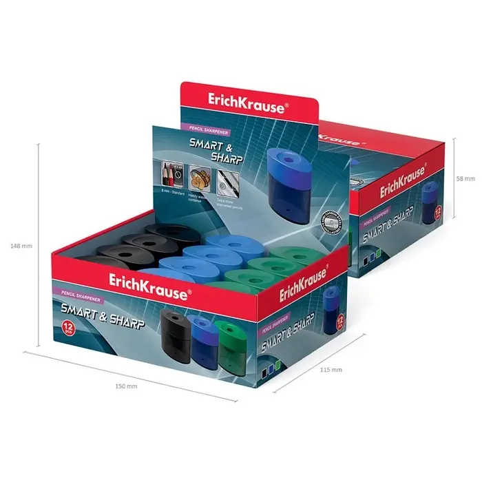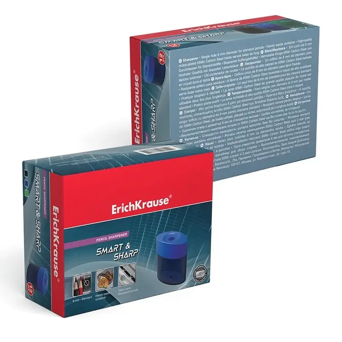 Точилка Erich Krause. SMART & SHARP, диаметр отверстия 8 мм, с контейнером, МИКС