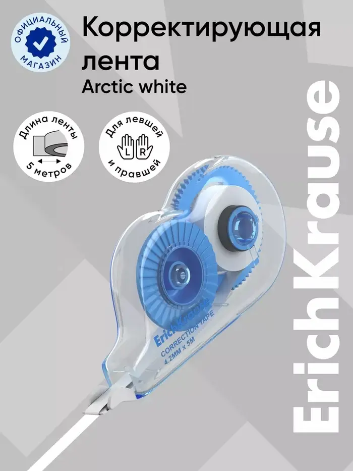 Корректирующая лента 4.2 мм × 5 м, ErichKrause Arctic white, супер-белая, европодвес