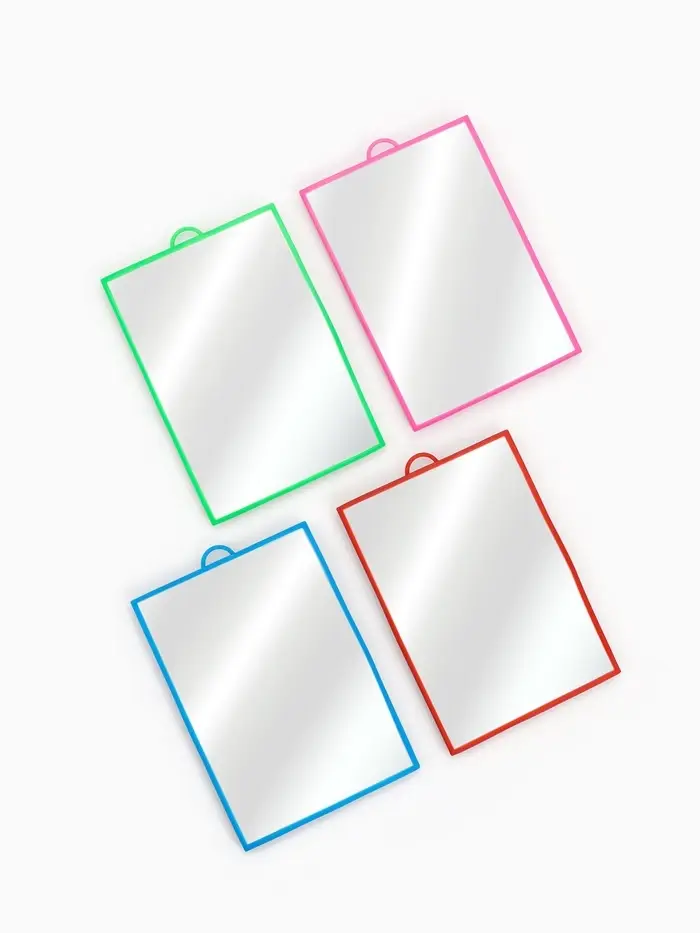 Многофункциональное зеркало с прямоугольным стеклом размером 11×16 см и разноцветной пластиковой рамой удобно использовать как настольное и настенное. Лёгкий корпус без увеличения подходит для разных комнат — спальни, гостиной, ванной или прихожей. Универсальный дизайн с ярким миксом оттенков дополняет интерьер и помогает контролировать внешний вид без лишних деталей.