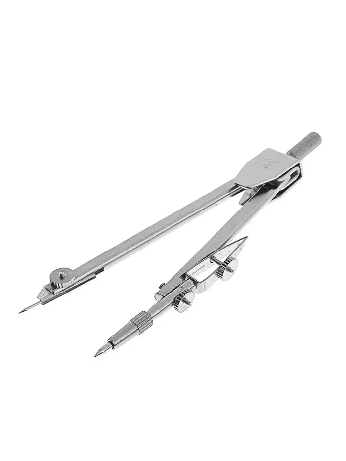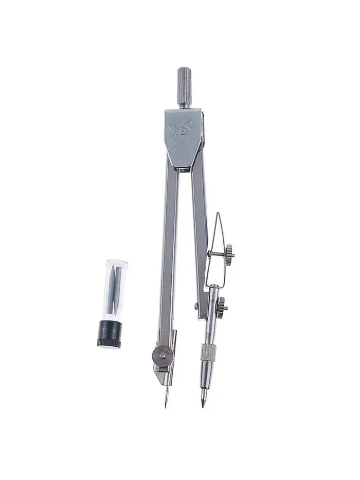 Этот металлический циркуль создан для черчения точных окружностей и измерения расстояний на чертежах. Его компактный размер и готовый набор грифелей делают его удобным для ежедневного использования в школе или на работе.