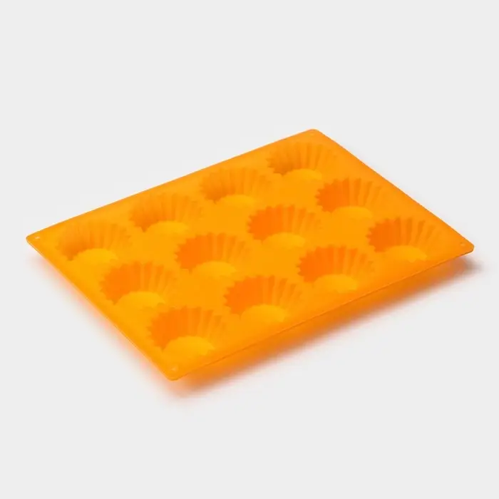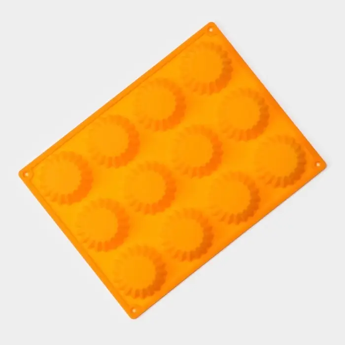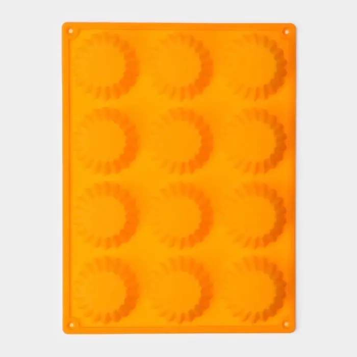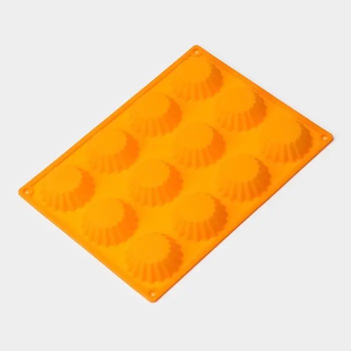 Форма для выпечки Доляна «Сладости. Круг реб», силикон, 28×21 см, 12 ячеек, d=6 см, d по дну = 4 см, оранжевая