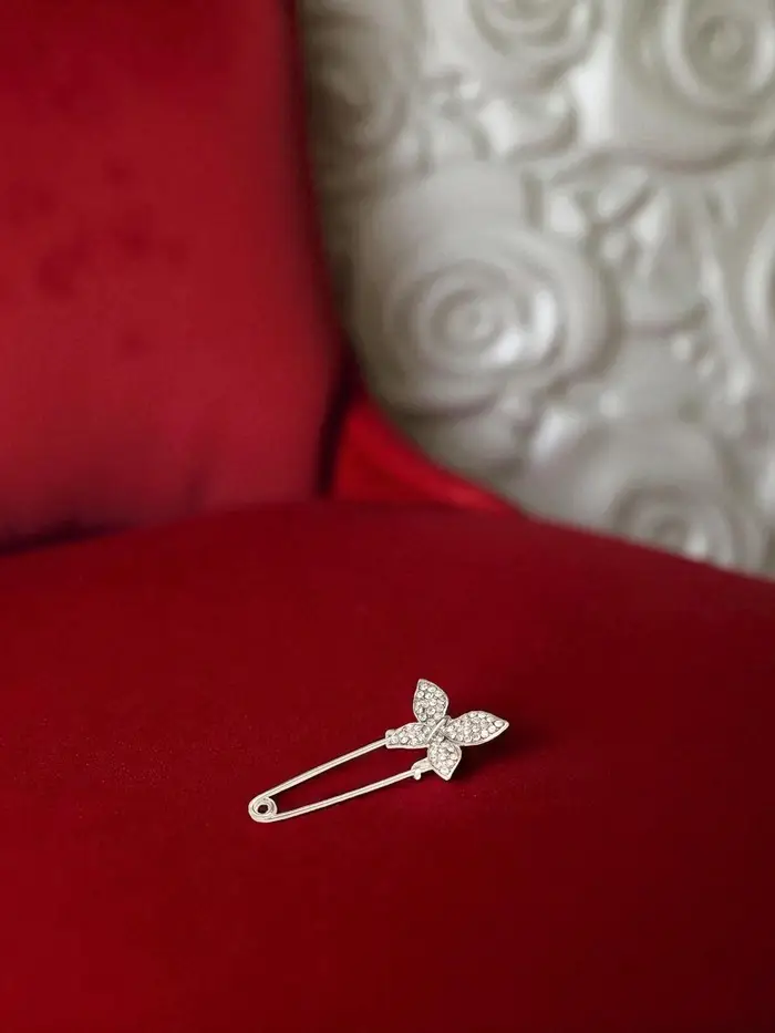 Изготовленная из качественных материалов, булавка сочетает в себе прочный металлический каркас и белые стразы, которые искрятся на свету, создавая эффектный акцент. Серебряная фурнитура придаёт изделию современный и элегантный вид, что делает его подходящим для женщин и девочек всех возрастов. Эта булавка станет замечательным подарком для сестры, мамы, бабушки или подруги, особенно в такие праздники, как 8 Марта.