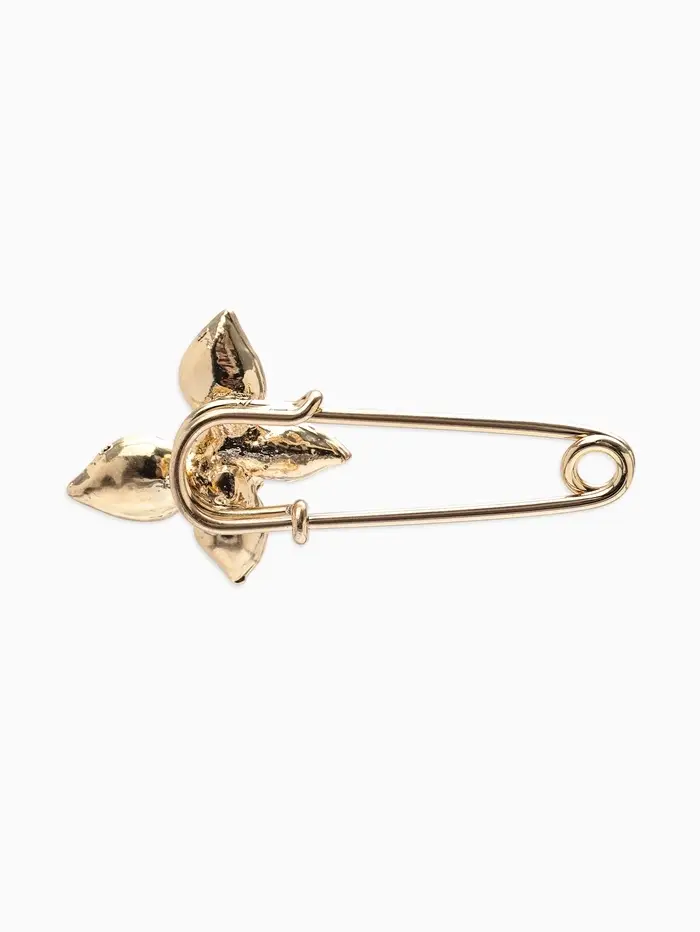 Особое внимание привлекает филигранная отделка булавки стразами, придающими изделию игривый блеск и сияние. Размер 5 сантиметров идеально подходит для крепления к ткани, обеспечивая надежное удержание без риска повредить одежду. Прочный металлический корпус служит гарантией долговечности и качества.