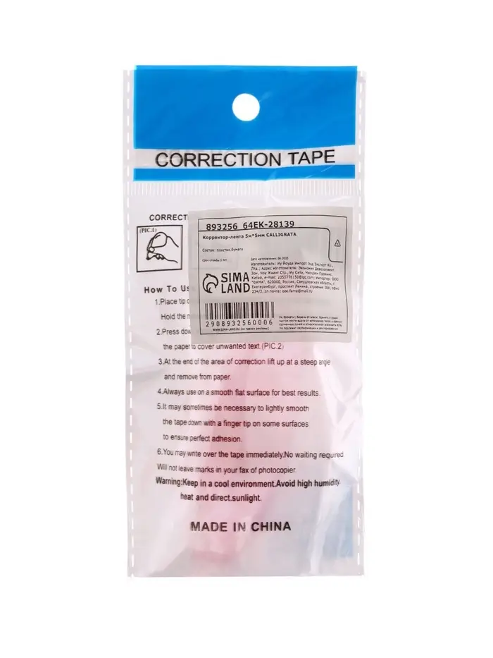 Корректор-лента, 5 м × 5 мм, блистер, европодвес, МИКС
