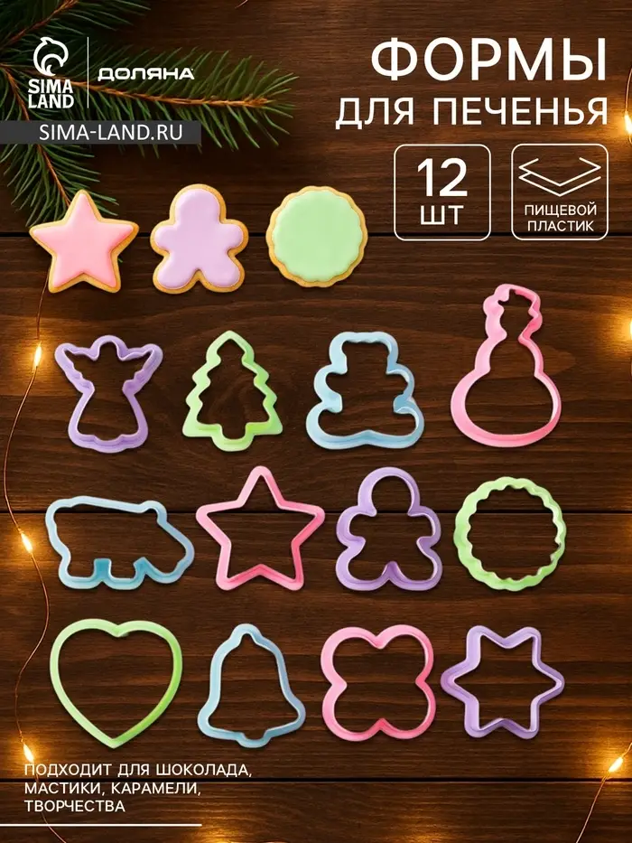 Формы для печенья новогодние Доляна «Праздник», набор 12 шт., пластик, МИКС