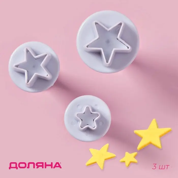 Плунжеры кондитерские Доляна «Звёздочка», набор 3 шт.: d=2 см, d=2.2 см, d=2.5 см, пластик, белые