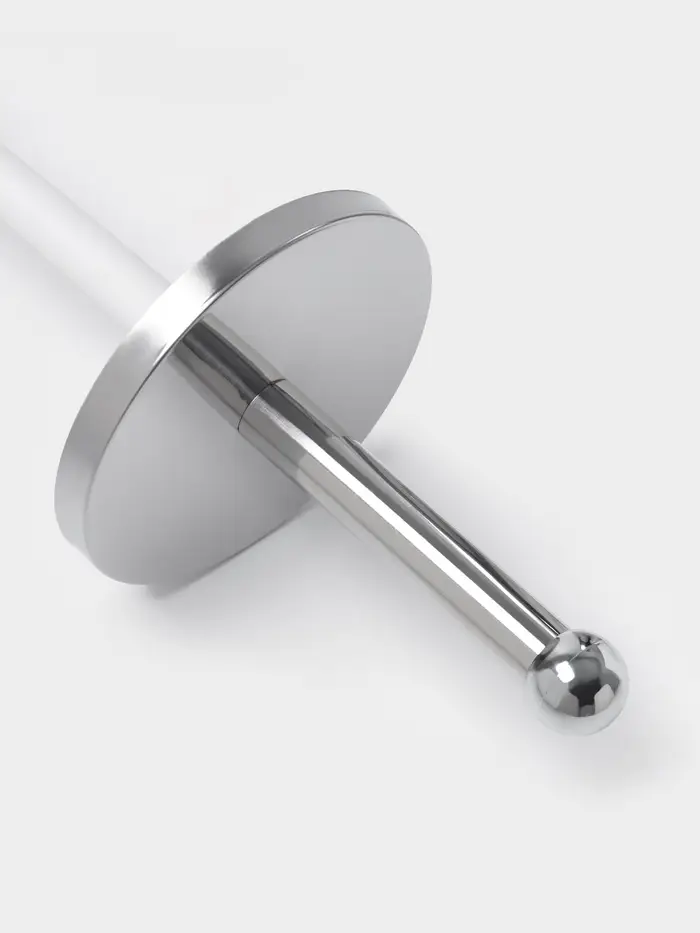 С высотой 38 см и шириной 10 см, данный ёршик выполнен из нержавеющей стали, что обеспечивает ему долговечность и легкость в уходе. Хромированное покрытие придаёт изделию современный вид, а отсутствие рисунка позволяет ему гармонично вписываться в любой интерьер.