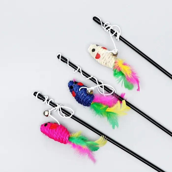 Дразнилка-удочка «Мышь из сизаля», цвет МИКС