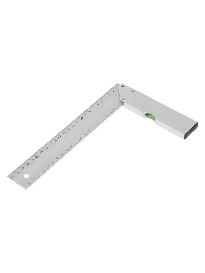 Угольник позволяет прочерчивать углы, а также проверять их и определять (тупые они или острые). Такой инструмент необходим в строительстве и ремонте. У некоторых моделей имеется ампула с жидкостью, которая реагирует на отклонения.
