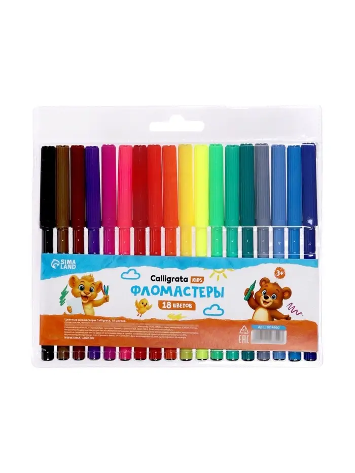 Набор фломастеров Calligrata содержит 18 ярких и насыщенных цветов. Вентилируемый колпачок обеспечивает безопасное рисование для ребенка . Идеально подходят для детей от 3-х лет и для тех, кто только начинает свой творческий путь. Фломастеры состоят из пластика, чернил. Упаковка представлена в виде PVC пакета. Благодаря фломастерам Вы сможете воплотить все свои творческие фантазии в реальность.