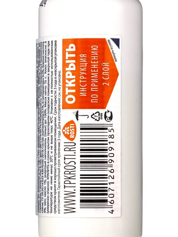 «Абсолют дуст супер» - инсектоакарицидное средство для уничтожения синантропных тараканов, клопов, мух, крысиных клещей, а так же мокриц, чешуйниц, уховерток на объектах различных категорий: в производственных и жилых помещениях, в образовательных, административных, в организациях социального обеспечения, коммунально-бытового назначения (гостиницы, общежития, спорткомплексы и др.), специалистами организаций, занимающихся дезинфекционной деятельностью, и населением в быту. Остаточная активность дуста не менее 3-6 недель в зависимости от вида и численности насекомых.СПОСОБ ПРИМЕНЕНИЯ: Нанести дуст тонким слоем на места обитания, скопления, или передвижения насекомых. Повторные обработки при появлении насекомых.Для уничтожения: МУХ – места их выплода: мусорокамеры в подвалах, емкости для сбора мусора и контейнеры – вне помещений; ТАРАКАНОВ – отверстия и щели в стенах, дверных коробках, порогах, щели вдоль плинтусов, облицовочных покрытий, вентиляционные отдушины, места разрушений на вводе и выводе труб водопроводной, отопительной и канализационной систем, под раковинами. При большой численности насекомых обрабатывают и смежные помещения в целях предотвращения заселения их тараканами; МУРАВЬЕВ – обработать ванные, душевые, котельные. При обнаружении садовых муравьев на нижних этажах построек обрабатывают крыльцо по периметру, отмостку дома, т.е. места проникновения муравьев в помещения извне из расчета 2-3 г/кв.м. Кухни и жилые комнаты не обрабатывать; КЛОПОВ – места возможного обитания насекомых: на участки стен, где есть трещины, в щели, за плинтусами, а также на заднюю поверхность мебели, деревянные части кровати и обратную сторону ковров и картин из расчета 2-3 г/кв.м. Постельные принадлежности не обрабатывать; БЛОХ – в нежилых помещениях, обрабатывая плинтусы, щели на поверхности пола (особенно в местах отставания линолеума) и за плинтусами Подстилки и коврики для животных, обработанные с нижней стороны, через сутки тщательно выбивают, а через 3 суток – стирают перед последующим использованием; КРЫСИНЫХ КЛЕЩЕЙ - обрабатывают, в первую очередь, места проникновения грызунов в помещения и пути их перемещения: лазы, трубы различных коммуникаций, плинтусы, стены и полы вдоль них. Затем места возможной концентрации клещей: обогреваемые участки стен и полов около отопительных приборов и тепловых коммуникаций. При наличии фальшпокрытий, за которыми могут перемещаться грызуны, потолки и стены так же подлежат обработке; МОКРИЦ, УХОВЕРТОК, ЧЕШУЙНИЦ – подвалы, бойлерные, душевые, котельные и другие влажные помещения. Ввиду высокой чувствительности этих видов к инсектицидам они погибают в течение нескольких часов.Действующее вещество ацетамиприд 0,1%, α-циперметрин 0,5%