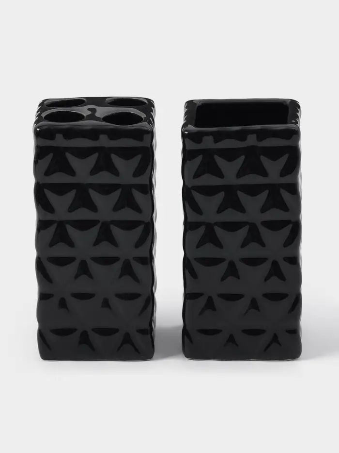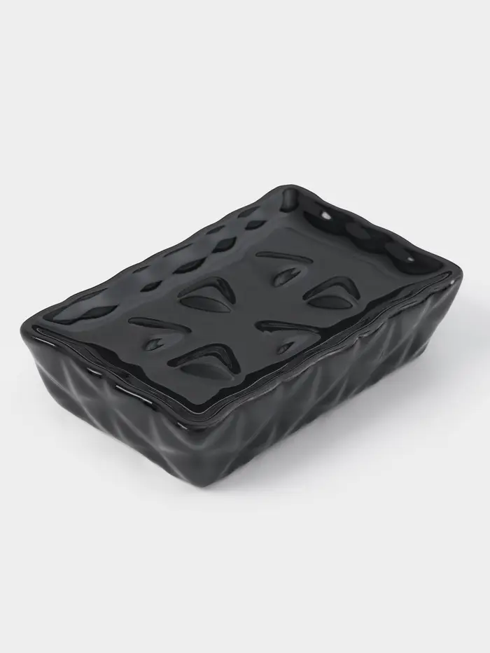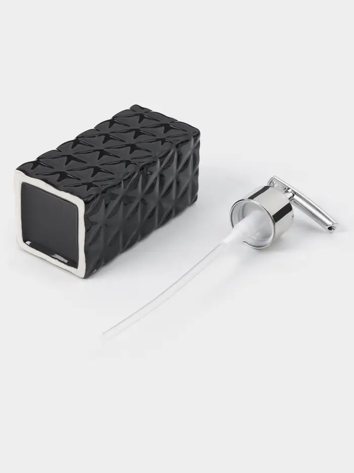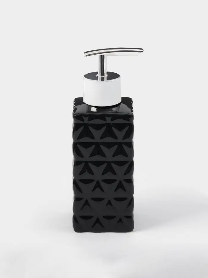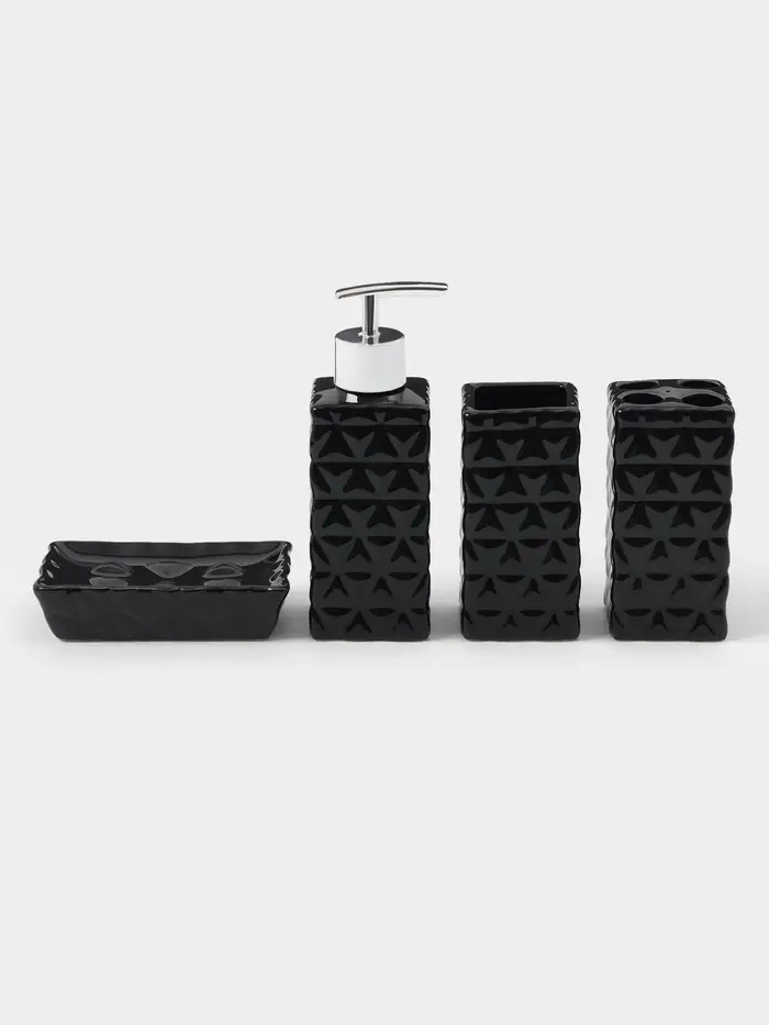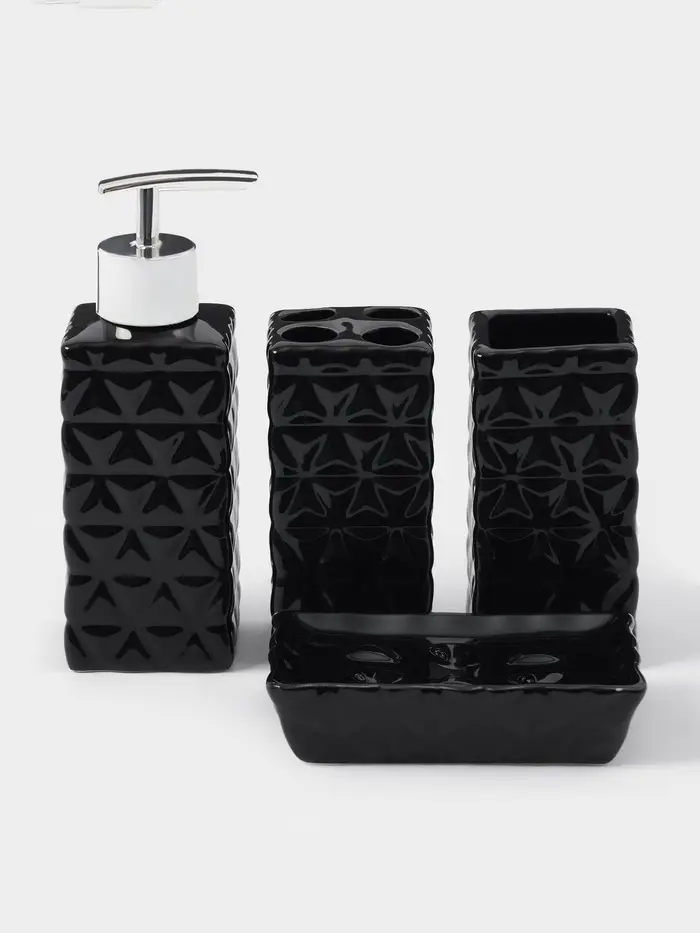 Набор аксессуаров для ванной комнаты «Ромбы», 4 предмета, дозатор 230 мл, мыльница, 2 стакана, чёрный