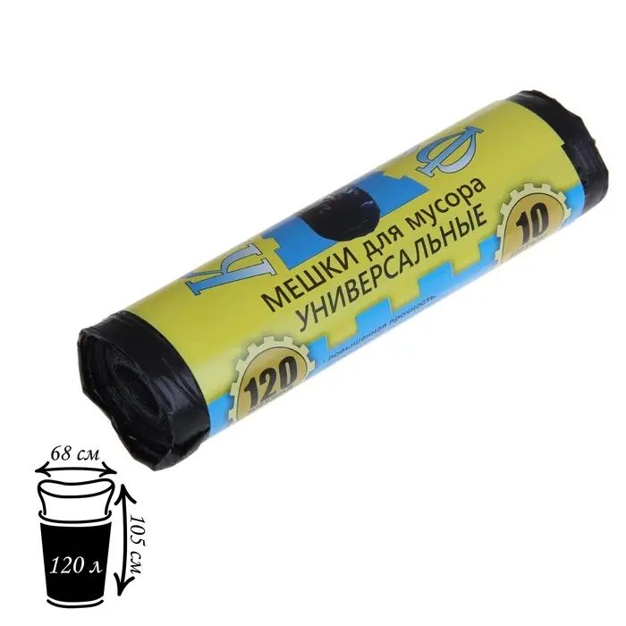 Мешки для мусора, 120 л, ПНД, 13 мкм, 68×105 см,10 шт., чёрные