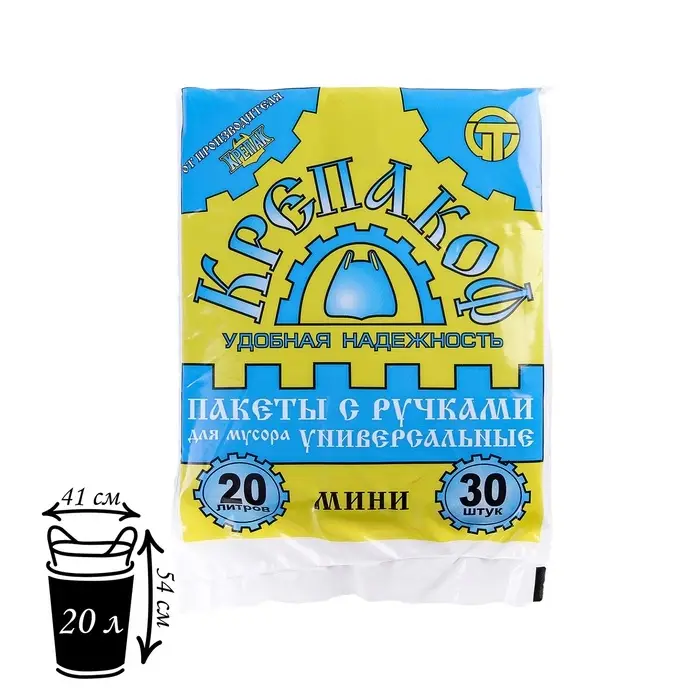 Мешки для мусора «Крепакоф», 20 л, с ручками, ПНД, 9 мкм, 41×54 см, 30 шт., чёрные