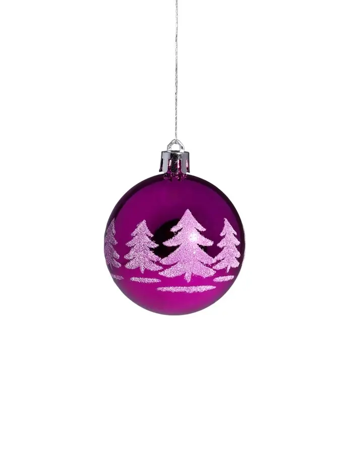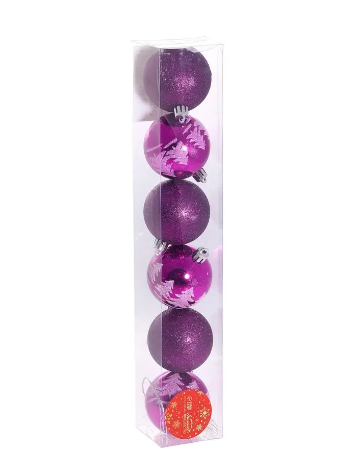Ёлочные игрушки «Новогодняя ёлка», шары новогодние, d=6 см, набор 6 шт., фиолетовый