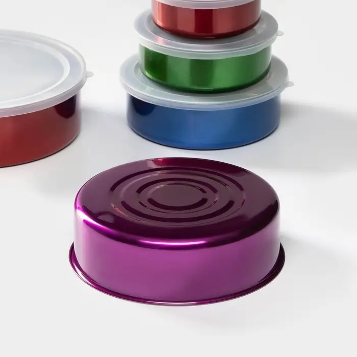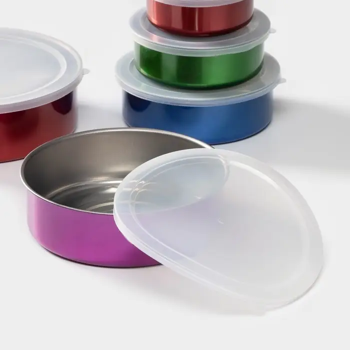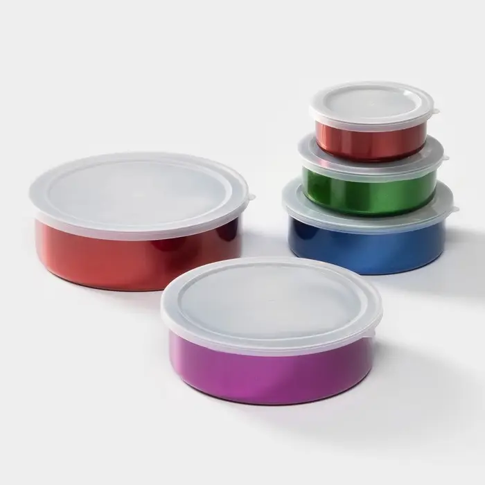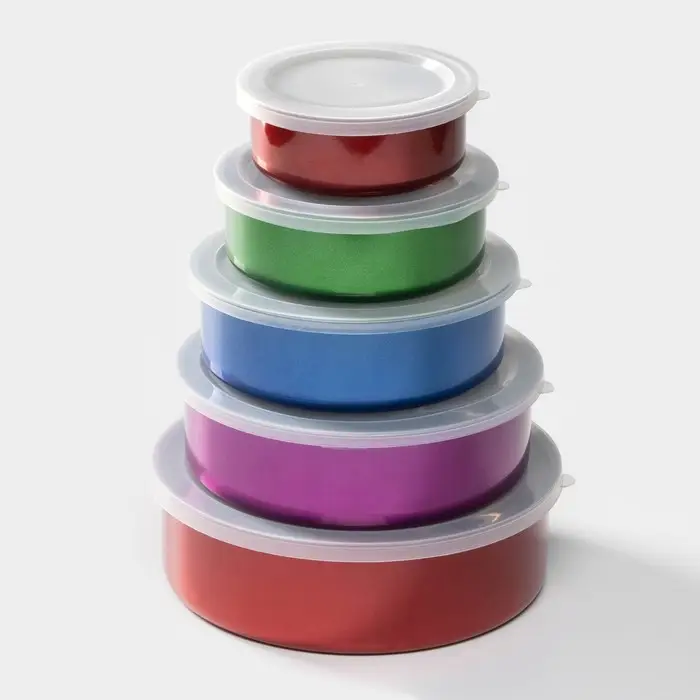 Набор контейнеров из нержавеющей стали «Радуга», 5 шт.: d=18/16/14/12/10 см, с крышками, МИКС