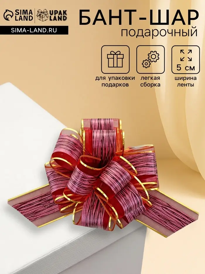 Подарочный бант - шар №4.5 «Золотое сечение», красный, для упаковки подарков