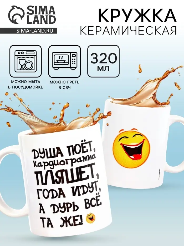 Кружка изготовлена из керамики. Рисунок нанесён методом сублимации, при котором краска проникает в верхний слой изделия, поэтому изображение получается стойким.