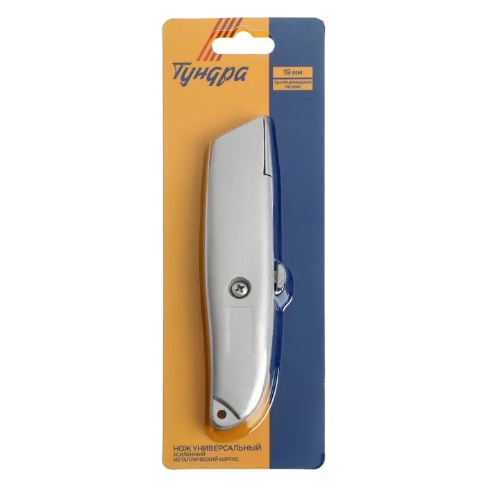 Нож универсальный ТУНДРА, металлический корпус, трапециевидное лезвие, 19 мм
