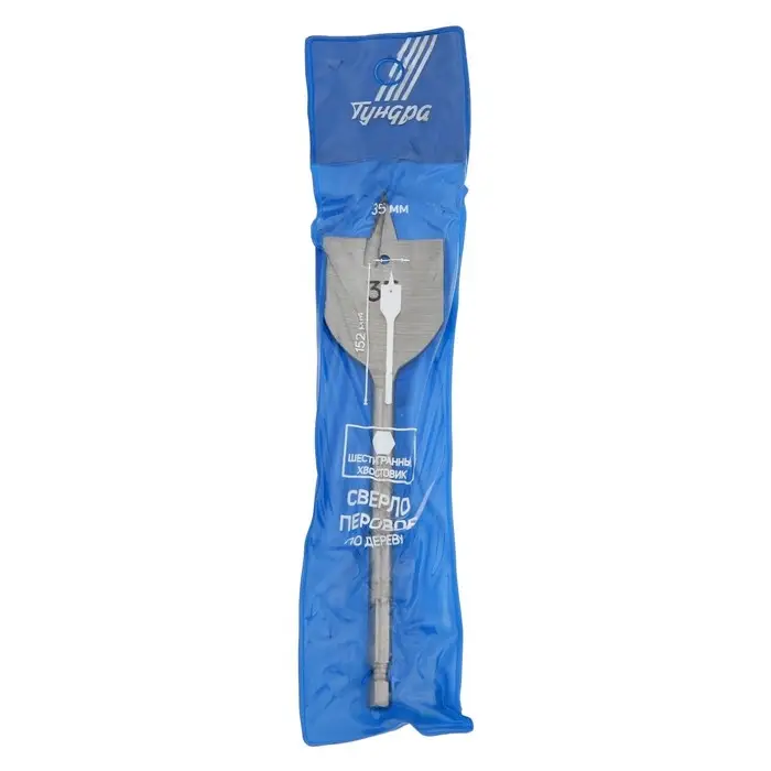 Сверло по дереву перовое ТУНДРА, шестигранный хвостовик, 35×152 мм
