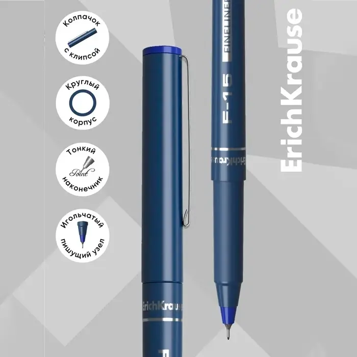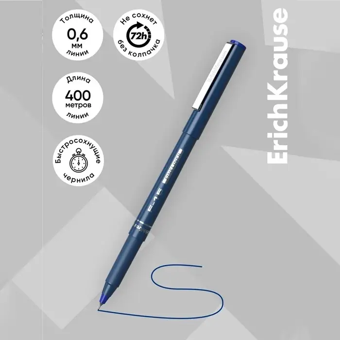 Ручка капиллярная ErichKrause F-15, синий стержень, узел 0.6 мм